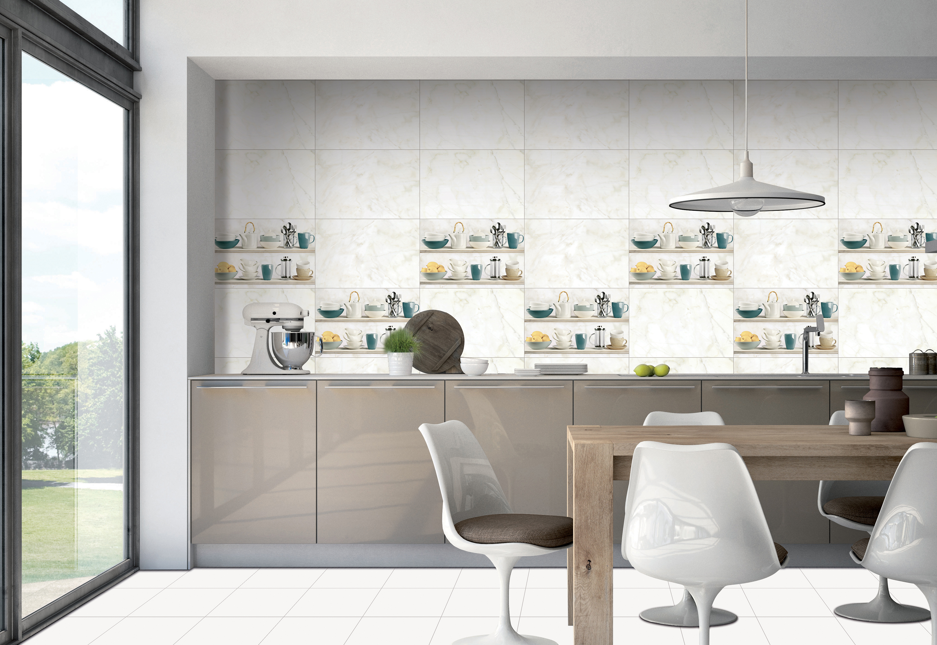 Orientbell Tiles has a large number and designs of cup plate design tiles to beautify your walls. These tiles can take any kitchen, dining room, cafe, and more to the next level instantly. The kitchen tiles cup plate design options are perfect for both small and large kitchens. Not only can you use cup plate kitchen tiles to create beautiful accent walls, but you can also use them as border tiles and highlighter tiles and to create iconic backsplashes as well.